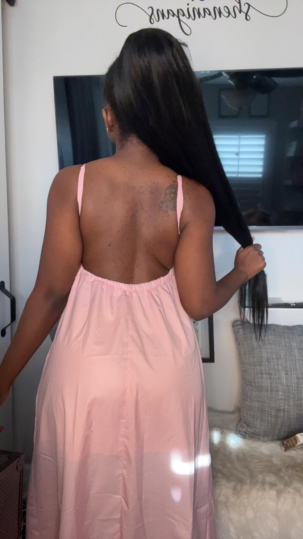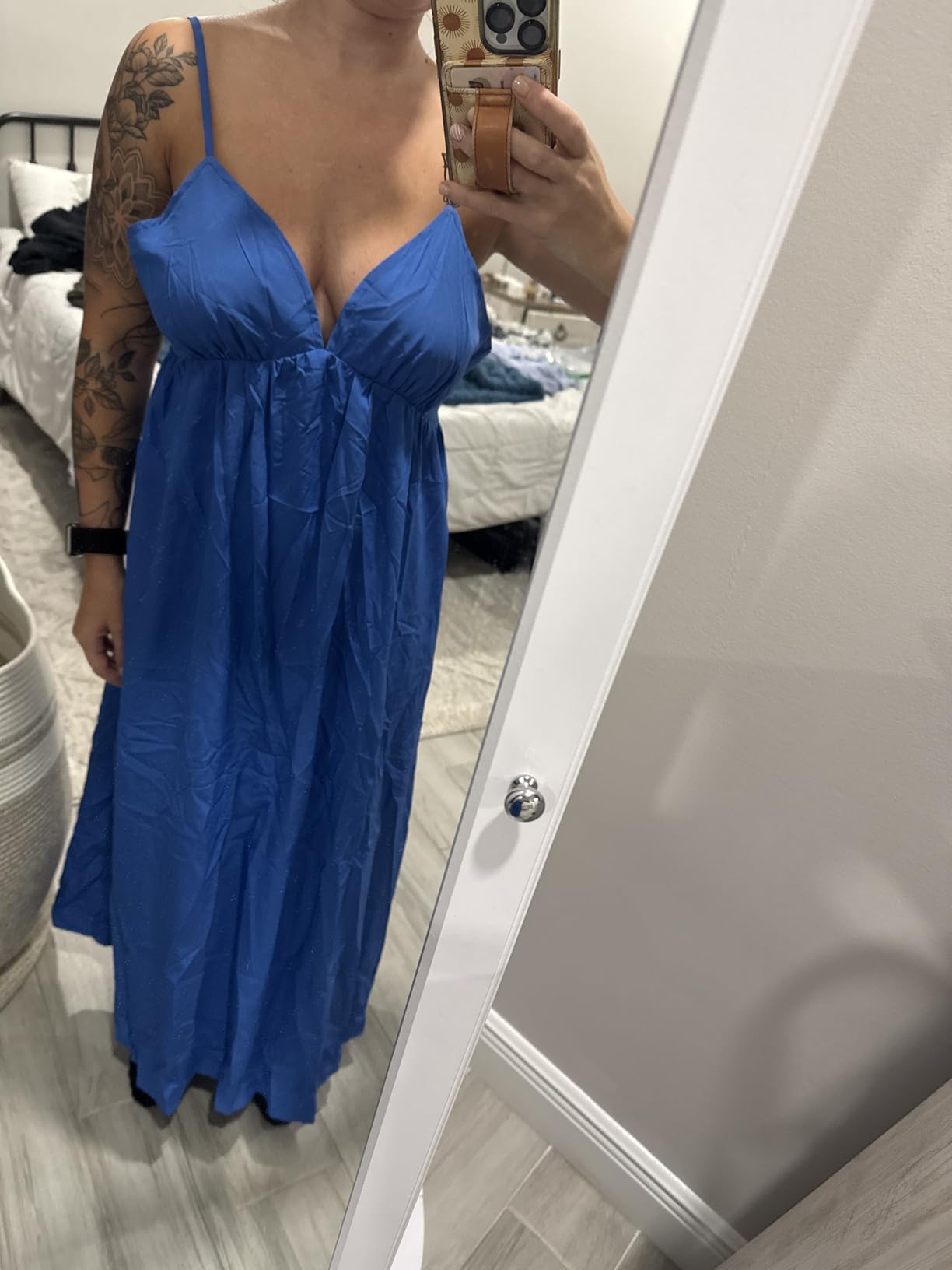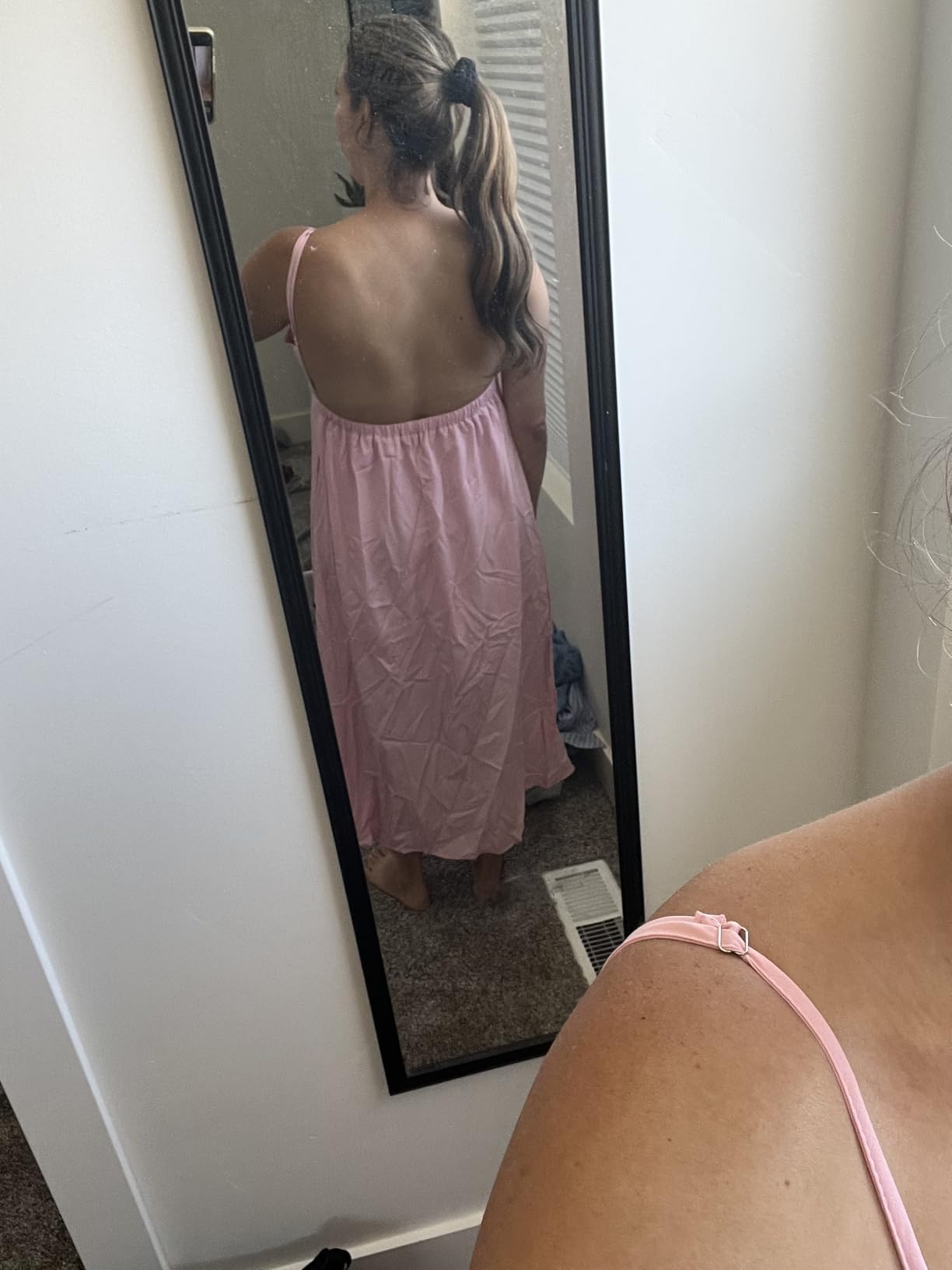 I wore this to a wedding and felt absolutely stunning. The fit is perfect and the open-back design is so flattering. The material drapes beautifully and doesn't wrinkle easily. This dress works for casual outings and formal events!