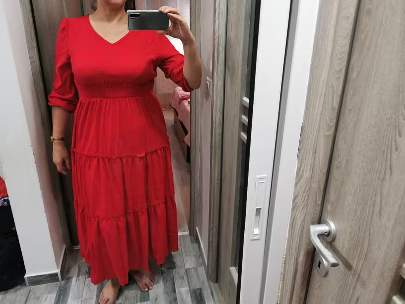 Every detail of this premium swing dress has been thoughtfully designed to make you feel beautiful and confident. From the flattering V-neck that elongates your silhouette to the romantic puff sleeves that add feminine sophistication, this dress celebrates your unique style. The pleated details and flowy layered construction create a graceful, elegant look that works beautifully for dates, special events, and any occasion where you want to feel your absolute best. Premium fabrics ensure comfort all day long while the versatile design transitions seamlessly from day to evening.